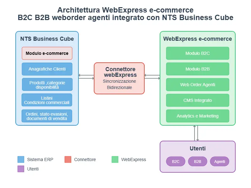 “Non si tratta di un semplice collegamento tra sito e gestionale. Con webExpress ogni dato, llistino, disponibilità, scadenziario, fido viene direttamente dall’ERP che già usi. Zero duplicazioni, zero disallineamenti.”